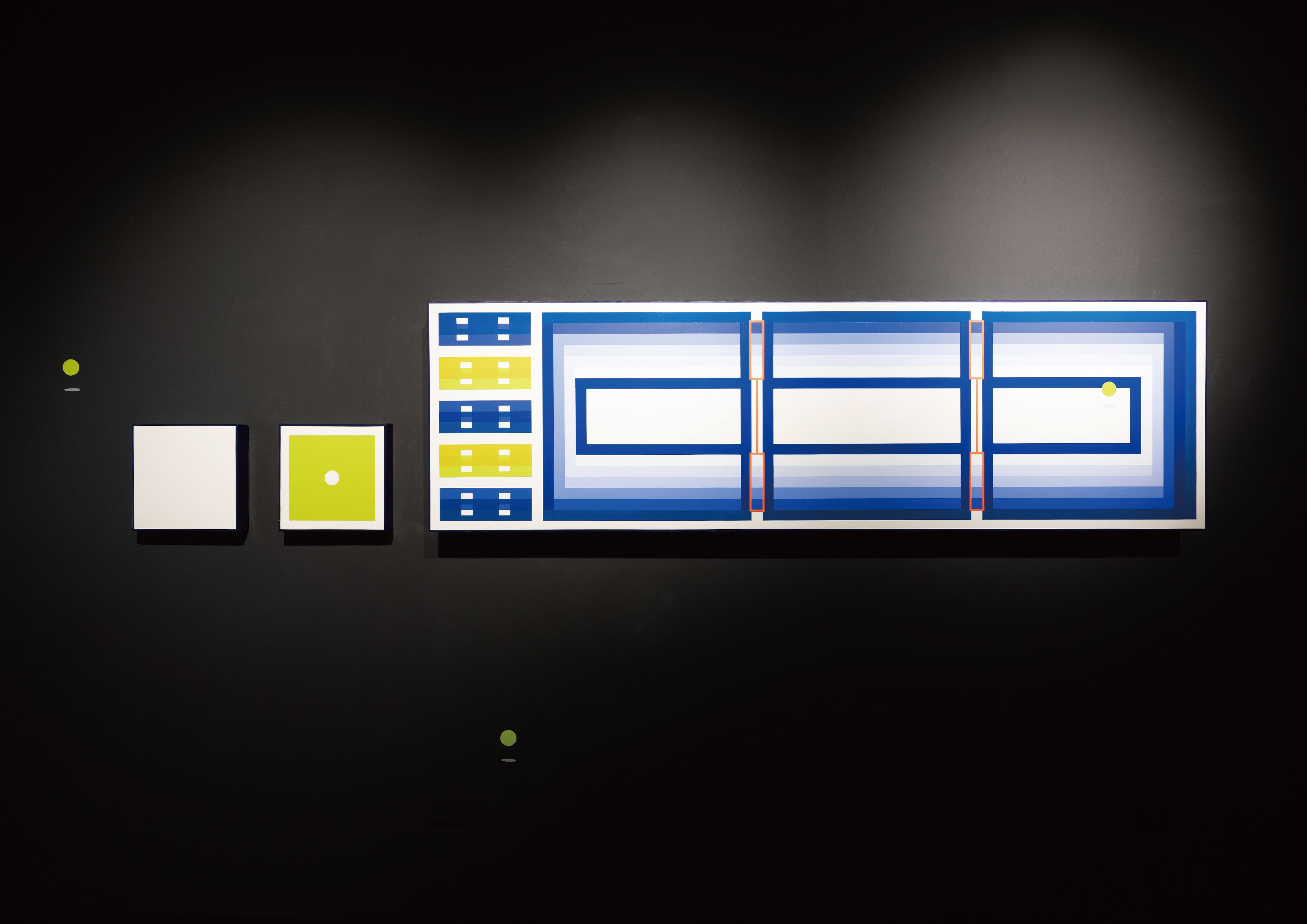 One day, he discovered that using a plastic scraper to apply paint could eliminate brushstrokes altogether. This awakened childhood memories of watching his father handle smooth, flat tiles. The saturated colors in his works echo the interface-like quality of the RGB color model on digital screens. Through a kind of “coloring-in” game, Lin found a way to reconcile himself with the real world. Yet our understanding of virtual technology seems to drift in a labyrinth of “return,” where it is hard to distinguish the starting point from the end.